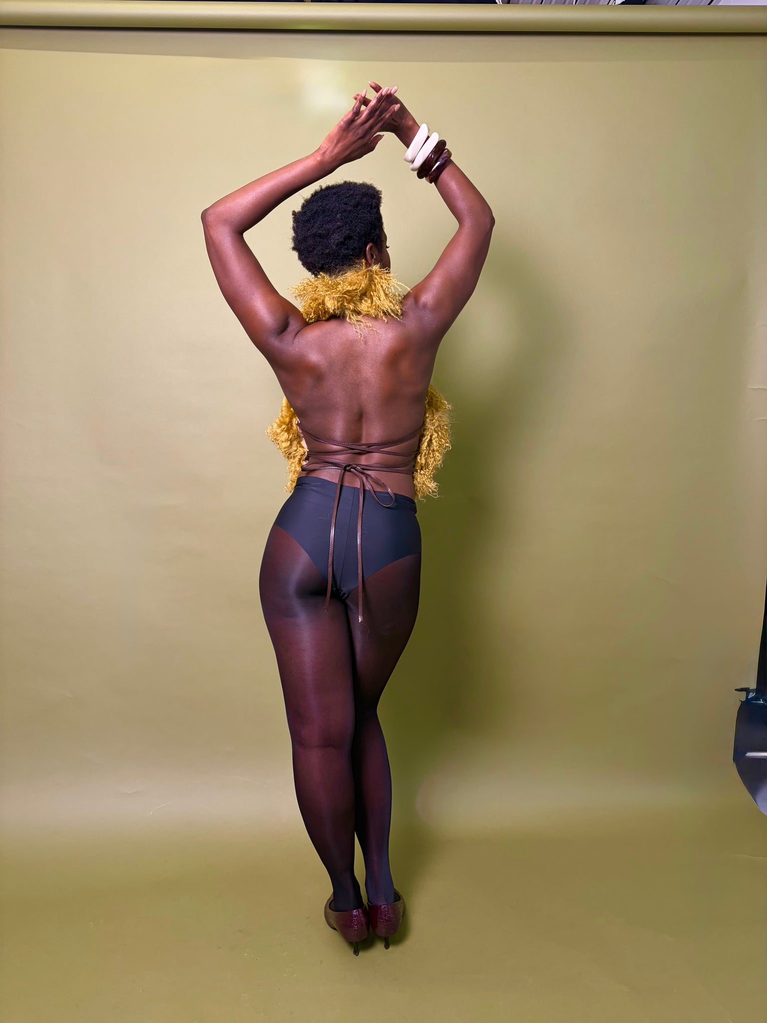 The Velencia halter neck fitted top is inspired by 70’s fashion but with a classic timeless, chic look with lace up detailing on the back.